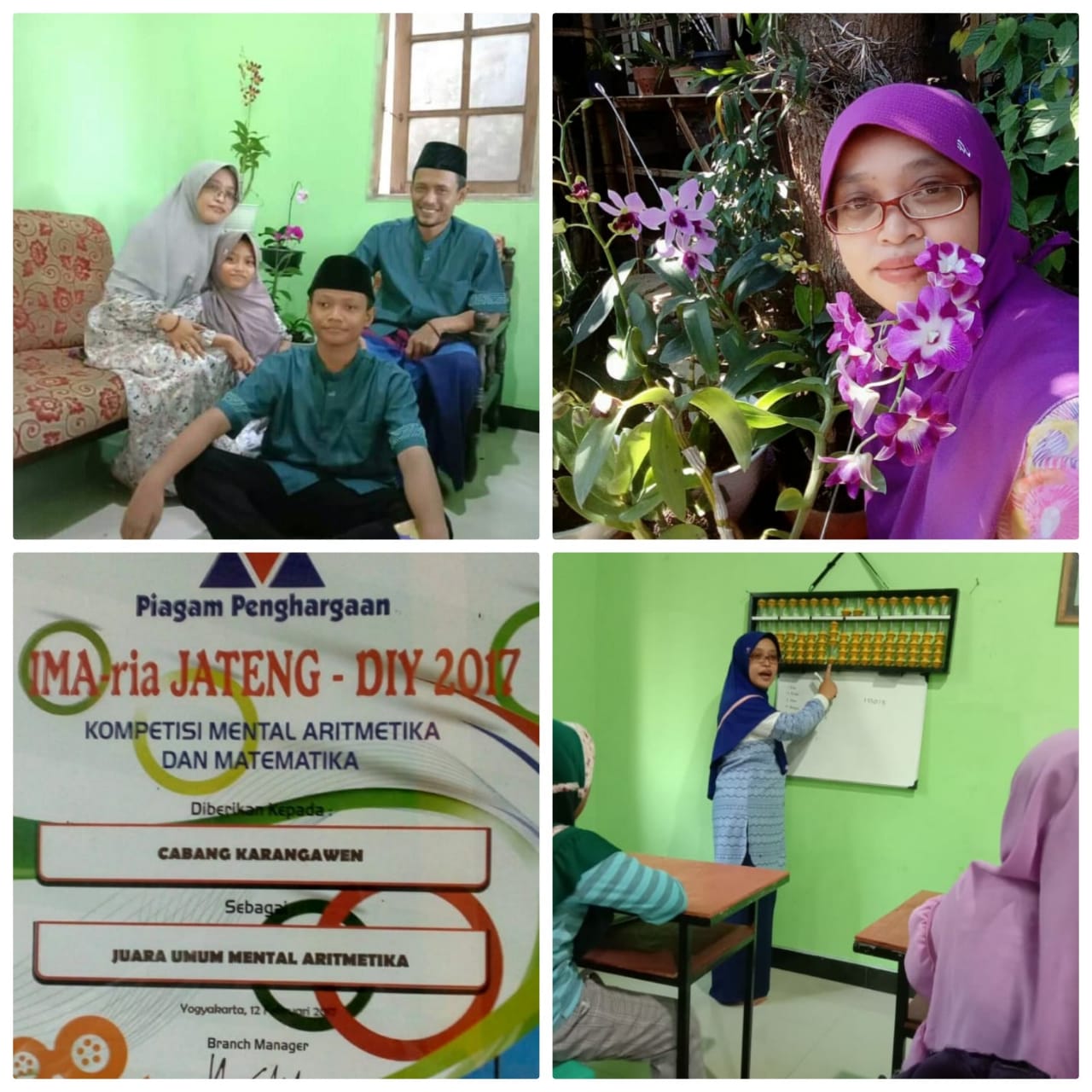 Di tengah kesibukannya mengajar, beliau juga menekuni hobinya bertanam anggrek. Ketika ditanya apa pesan untuk teman-teman seprofesi, khususnya guru IMA, Ibu Upi menjawab dengan mantap : bekerjalah dengan cinta, cintailah anak-anak dengan segala karakternya, teruslah belajar dan berlatih untuk mengasah kemampuan diri. Luar biasa, ternyata itulah yang beliau lakukan selama ini, sehingga siswa IMA Karangawen sebegitu cinta kepada Ibu Upi. Sosok yang lembut hati tapi tidak lupa berlaku tegas dalam mengajar, sehingga mampu membuat siswa IMA Karangawen menjadi anak-anak yang berprestasi. Beliau juga menyampaikan harapan pribadi, agar IMA bisa dikenal lebih luas dan semoga bisa masuk kurikulum pendidikan di Indonesia. Beliau juga berharap IMA semakin maju, berkualitas, dan bisa berpartisipasi dalam mencerdaskan anak bangsa.